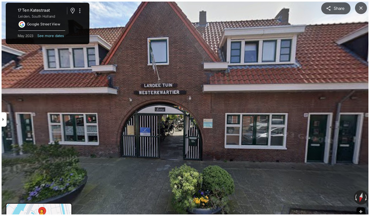 Meer aanwijzingen: Zodra je door de grote ronde poort van de speeltuinvereniging aan de Ten Katestraat 10a loopt, is er direct een gebouw rechts, kan niet missen.